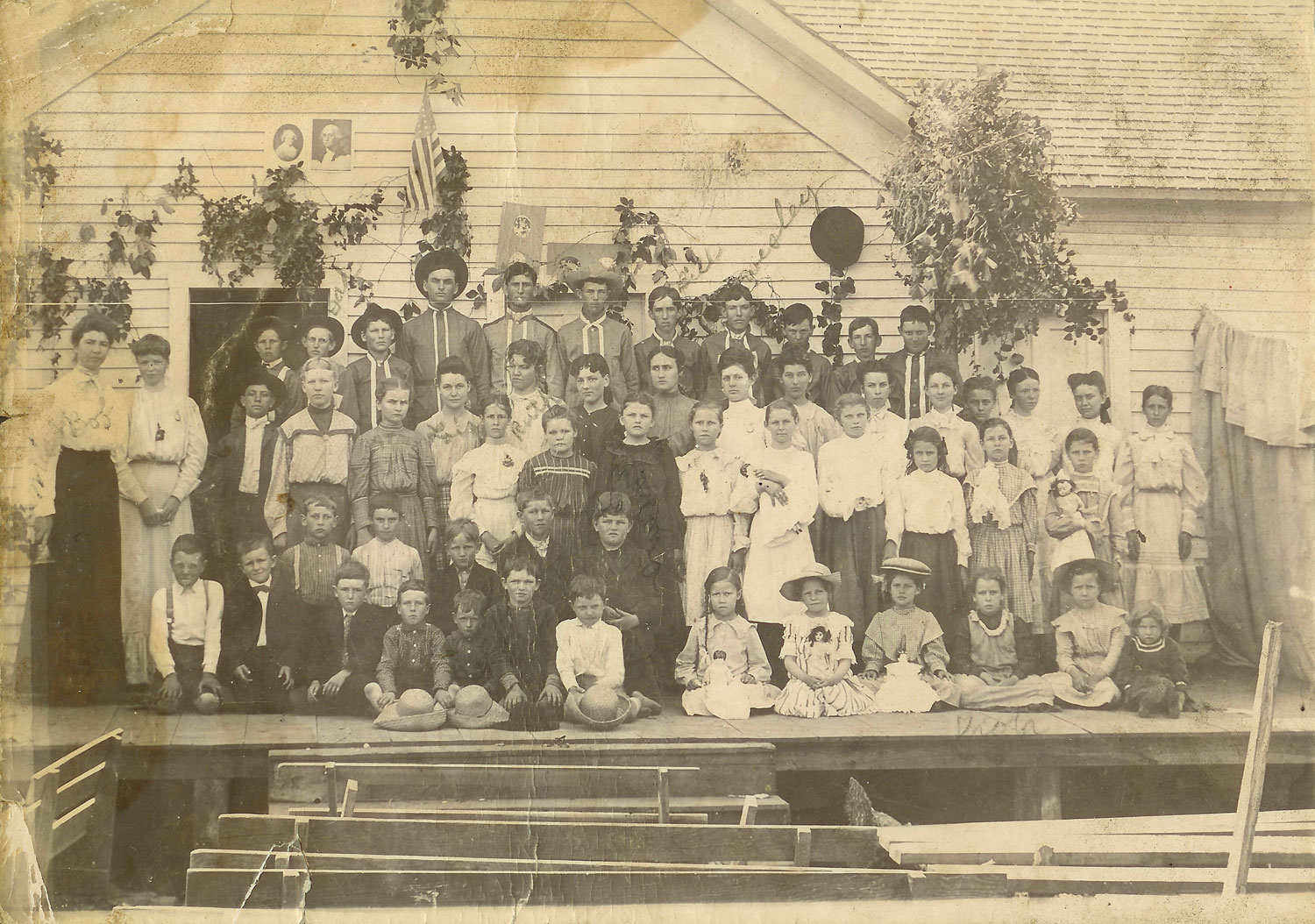 Standing in front of the two tallest boys are Lois and Ruth.